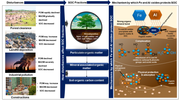 图2人为干扰对土壤有机碳组分的影响以及铁铝氧化物稳定有机碳的机制